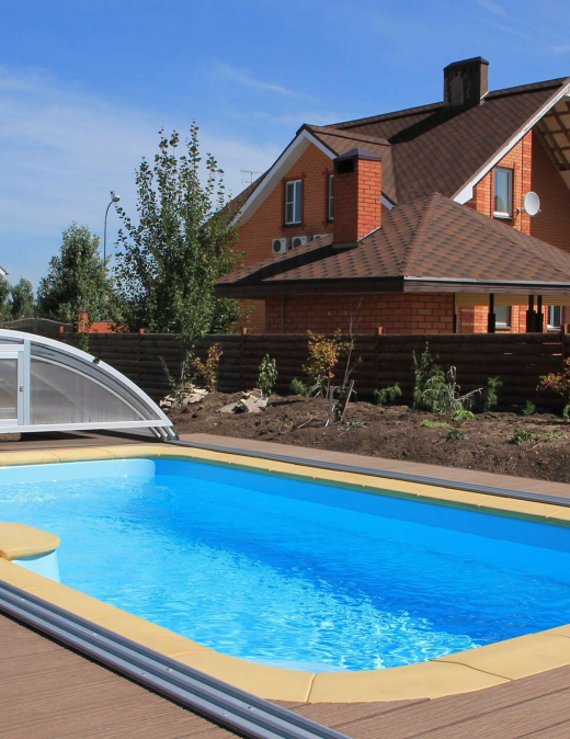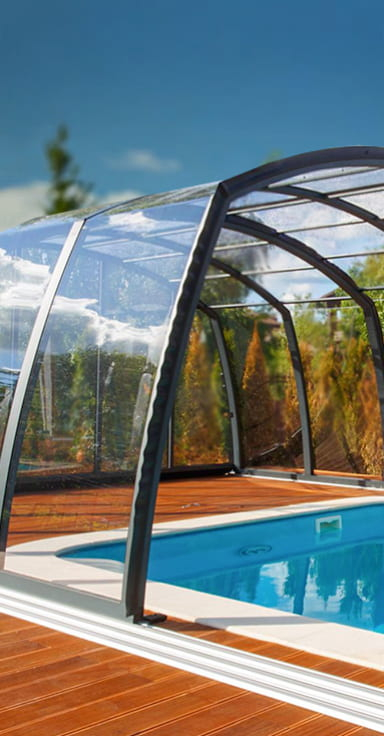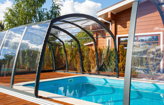 Хотите продлить купальный сезон для Вашего уличного бассейна с ранней весны до поздней осени — воспользуйтесь современной телескопической конструкцией из алюминия и оргстекла. Павильон можно сдвигать в теплую солнечную погоду и возвращать обратно в холодную и дождливую. Он не боится ветров и снегопадов и хорошо защищает Ваш бассейн от любых загрязнений. Вы можете выбрать недорогие низкие модели или установить высокий купальный зал.