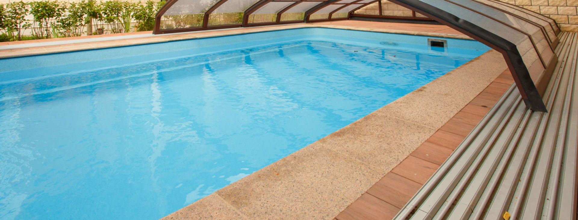 Хотите продлить купальный сезон для Вашего уличного бассейна с ранней весны до поздней осени — воспользуйтесь современной телескопической конструкцией из алюминия и оргстекла. Павильон можно сдвигать в теплую солнечную погоду и возвращать обратно в холодную и дождливую. Он не боится ветров и снегопадов и хорошо защищает Ваш бассейн от любых загрязнений. Вы можете выбрать недорогие низкие модели или установить высокий купальный зал.